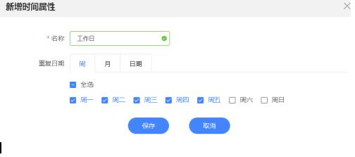 時間屬性用來配置定時打鈴的執(zhí)行時間,即在新建定時打鈴前需先配置一個時間屬性。時間屬性可應(yīng)用于所有任務(wù)。有部分任務(wù)需要更改執(zhí)行時間,只需修改這些任務(wù)的時間屬性即可。