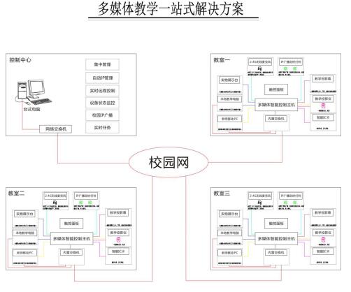 獨立控制:每個教室可用面板或本地軟件獨立控制該教室內的任意一個多媒體設備和環境設備。