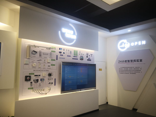 該展廳總占地面積1500多平米,設計風格極具科技感,展示了從智慧城市到智慧教育等全產業物聯網解決方案。