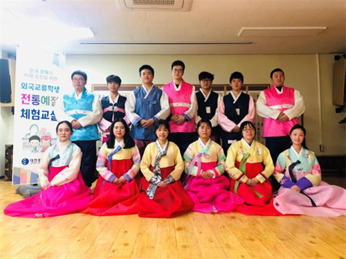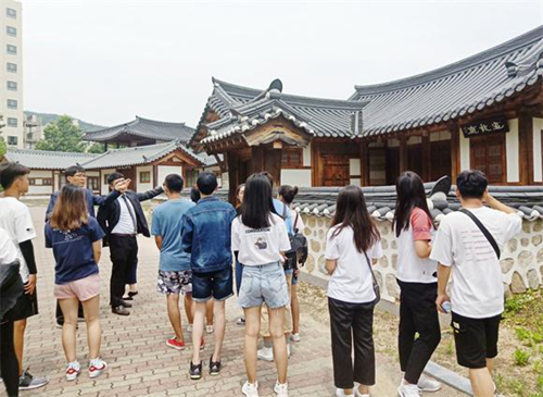 2019年暑期研學(xué)項(xiàng)目,來自浙江農(nóng)林大學(xué)、河北工業(yè)職業(yè)技術(shù)學(xué)院、河北化工醫(yī)藥職業(yè)技術(shù)學(xué)院、山東理工職業(yè)技術(shù)學(xué)院的40余名學(xué)生分批開展了短期研修學(xué)習(xí)。研學(xué)課程中,特別設(shè)置有眾多內(nèi)涵豐富的特色文化體驗(yàn)、韓語提升、專業(yè)技能學(xué)習(xí)類項(xiàng)目。本土韓語學(xué)習(xí),培養(yǎng)學(xué)生語言興趣和對語境、語法的提升,為就讀韓國名校奠定語言基礎(chǔ);特色文化體驗(yàn),開設(shè)有韓服、料理飲食、泡菜、陶藝課、手工香皂制作等韓國文化探訪體驗(yàn)課程,旨在讓學(xué)生感受韓國傳統(tǒng)文化的魅力,在傳統(tǒng)文化與現(xiàn)代文化相融合的基礎(chǔ)上激發(fā)學(xué)生興趣和對生活的熱愛;專業(yè)提升學(xué)習(xí),特別針對設(shè)計(jì)類專業(yè)學(xué)生,安排三星企業(yè)創(chuàng)新博物院、動漫俱樂部、藝術(shù)設(shè)計(jì)展等參觀活動,讓學(xué)生懂得“設(shè)計(jì)來源于生活,藝術(shù)在于詮釋”,激發(fā)學(xué)生的創(chuàng)作靈感,同時(shí)了解韓國藝術(shù)類的造詣;風(fēng)景名勝游覽,組織學(xué)生參觀景福宮、仁寺洞等歷史勝地,了解韓國發(fā)展歷史,增長本土知識和文化沉淀,培養(yǎng)文化素養(yǎng)。此外,還舉辦了豐富多彩的校外交流活動,如首爾明洞游、龍仁愛寶樂園游、炸雞派對等,在異國他鄉(xiāng)放松心情,交流心得。