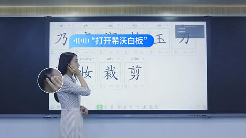 最受老師喜愛的功能,當屬語音喚醒應用軟件。“打開希沃白板”、“打開視頻”、“關閉暴風影音”……一句話的事兒,對應的軟件應用就能快速被喚醒、進入應用界面,或者關閉程序。無論在教室的哪個位置,老師都能通過語音交互調取自己需要的應用,無需在講臺和學生座位之間來回跑動。