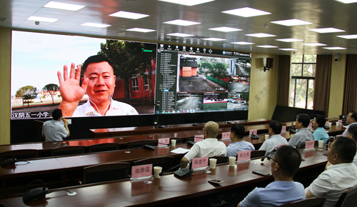 調研過程中學安體系防控大數據中心分別連線西安市蓮湖區新建幼兒園、安康漢陰五一小學以及月河中學等學校,由各校校長分別向朱主任和人大代表們匯報了本校安全監控防控平臺的應用及機制保障情況。