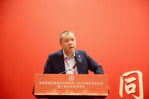 最后,彭錦環會長作會議總結講話。他指出,一年來,協會始終堅持以“服從組織、服務會員、整合資源、助力教育”為宗旨,秉承“同心筑夢,科教領航”的理念,為推動深圳經濟建設,落實市委、市政府打造更具時代引領性的深圳品牌戰略任務,助力深圳市教育事業持續健康快速發展作出了積極的貢獻。