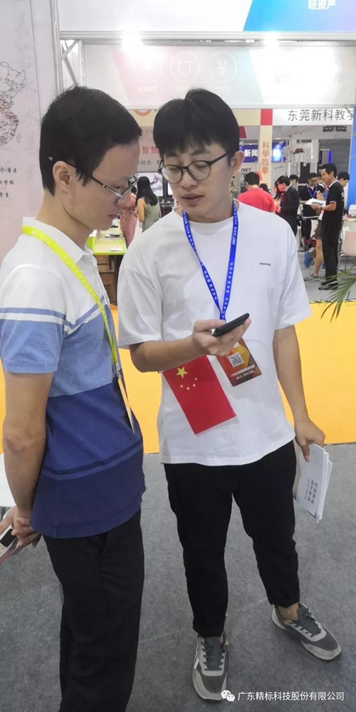 展會(huì)笫三天,參展客人對(duì)精標(biāo)智慧課桌圍觀了解