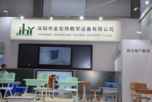 本屆博覽會,深圳市金宏揚教學設備有限公司攜柱立式升降黑板、活動課椅系列等產品參加展會。