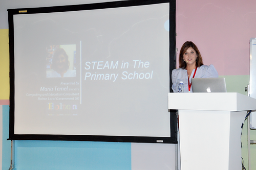 工作坊邀請了英國博爾頓市教委計算與數字化學習項目指導員,英國博爾頓會議教育顧問Maria Temel作題為《激發每個孩子發現創造的樂趣-小學STEAM課程整合與教師培訓》的演講。作為英國博爾頓市教委計算與數字化學習項目(包括STEAM項目)指導員,Maria在45所小學里培訓新技術技能和知識,為45所學校的老師們提供切實有限的專業發展。身為新技術領導者,她幫助學校開發一系列令人興奮和有意義的課程資源;并在基礎設施方面提供咨詢和建議。近年來,STEM和STEAM已經成為英國小學的重點關注對象,Maria想在她的工作中反映這一點的重要性。為了提高STEM和STEAM在小學教育中的認知度,她開發了專業發展培訓包。