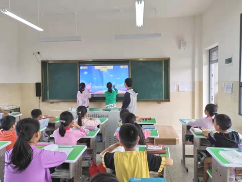 在“小老師”指導下,學生們進行課堂活動
