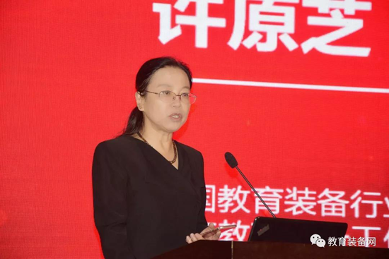 中國教育裝備行業協會城市教育裝備工作委員會副理事長兼秘書長許原芝主持案例頒獎環節