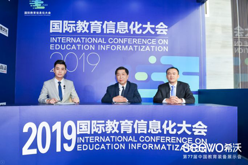 展會現場,2019國際教育信息化大會同期舉行,并由山東教育衛視同步直播。此次大會以“技術賦能教育,創新引領未來”為主題,著重從“人工智能時代的智慧教育”和“技術助力教育均衡發展”兩個議題入手,組織高校專家學者、著名企業代表等共同探討和交流,希沃作為代表企業參與了此次大會。