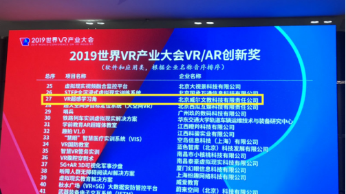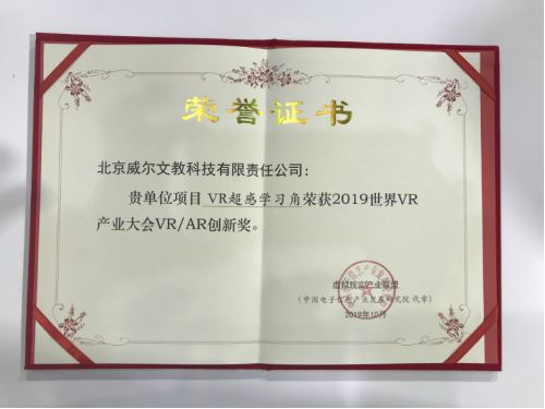 2019世界VR產(chǎn)業(yè)大會(huì): 威爾文教VR超感方案獲創(chuàng)新大獎(jiǎng)