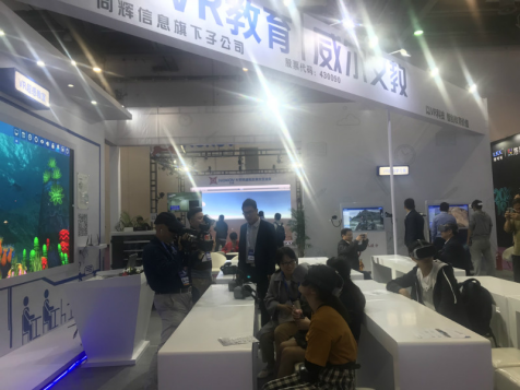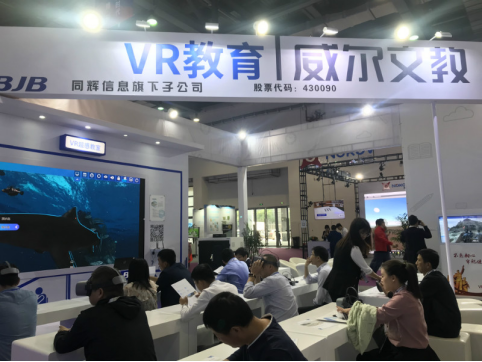 在此次展會(huì)上,威爾文教打造的VR超感教室以其生動(dòng)形象、自然交互的特點(diǎn)吸引了眾多與會(huì)者參與體驗(yàn),通過(guò)講師的引導(dǎo)式講解,讓與會(huì)者能夠沉浸其中,遨游知識(shí)的海洋。更有江西5套記者現(xiàn)場(chǎng)體驗(yàn)采訪。