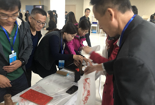 在產品體驗區,許多教師熱情體驗傳統文化套裝,感覺非常新奇,紛紛感嘆:“原來雕版印刷的操作是這樣的流程,刷印出作品后特別有成就感!”并認為應用到實際教學中學生一定會喜歡這種體驗式的學習方式,同時還能加深學生對中國傳統印刷術的印象,無形中培養了學生的愛國情懷,實現本次會議“推進歷史教學,落實立德樹人”的主題目標。