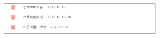 2019年10月18日-21日,在這碩果滿園香的金秋十月,佳比集團迎來為期四天的第三季度銷售總結大會。會議活動安排如下:
