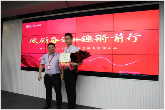 隨后進行了第三季度優秀銷售員表彰大會,由集團董事長黃總、副董事長夏總、吳總分別為冠亞季軍獲獎者頒發了表彰證書和獎金,以此鼓勵工作優秀、業績突出的銷售精英。在頒獎過程中,獲獎者做了獲獎感言。他們紛紛表示,感謝集團提供的大平臺,才有機會展現自己、貢獻自己一份綿薄之力。感謝集團對自己成績的肯定和認可,接下來,將會更加努力,團結一心,再創佳績。