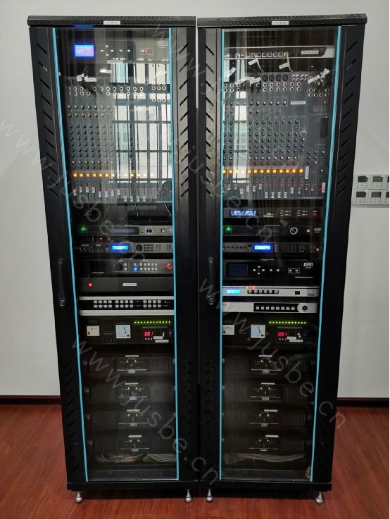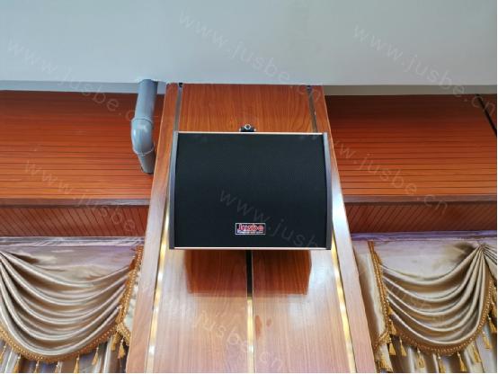 根據該院校2個項目廳內的建筑布局、容積大小及會議擴聲要求,綜合分析考量,廳內揚聲器選用了同軸會議音箱。此款音箱采用點聲源同軸結構設計,能夠提供90°的軸對稱恒指向性輸出,可以避免傳統號筒高音和低頻喇叭單元組合的典型極性波瓣干涉效應的弱點,解決相位偏差的問題,高低音頻率信號都以同一軸線傳播到觀眾耳中。科學合理的布局安裝,做到聲像定位準確、 聲音覆蓋均勻,觀眾區擁有音質清晰、聲音細膩的語言環境,且還能最大程度的減少嘯叫產生。