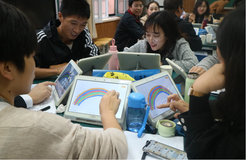隨后,她在場的教師們下發(fā)了小組協(xié)作任務(wù),以畫彩虹的方式體驗希沃易課堂功能。畫作展示過程中笑聲不斷,她在最后總結(jié)到:“假如學(xué)生也能在這種輕松的氛圍中共同完成小組協(xié)作任務(wù),不僅效率高,還能鍛煉學(xué)生的合作意識。”