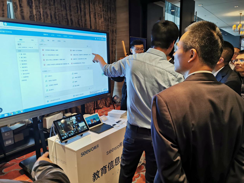 視源股份未來教育集團副總裁崔劍作為聯盟合作伙伴代表之一上臺發言,并向媒體介紹希沃“小數據,聯萬物”智慧教育場景,表達出希沃本著“開放、合作”的心態,與中國移動、聯盟內各合作伙伴緊密合作,實現各方協同、創新、融合、實現共贏的愿景。
