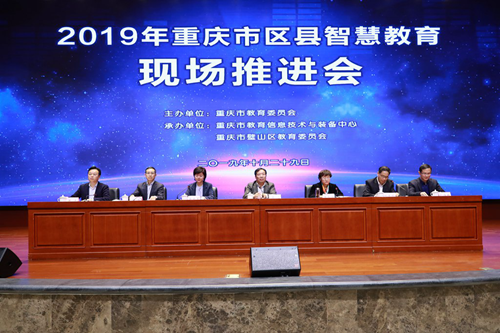 10月29日,重慶市2019年區縣智慧教育現場推進會在璧山區璧山中學召開,市委教育工委委員、市教委主任助理徐立出席會議并講話。