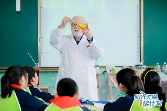 整整45分鐘,孩子們視線都沒有從白花胡子、白花頭發的英國化學家David G. Evans身上移開過。David G. Evans給自己取了個中文名,叫戴偉,不過他更喜歡孩子們叫他“戴博士”。