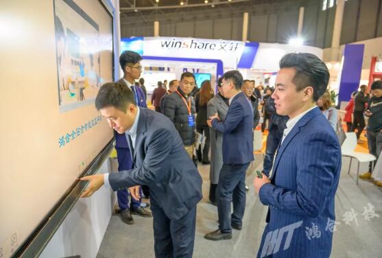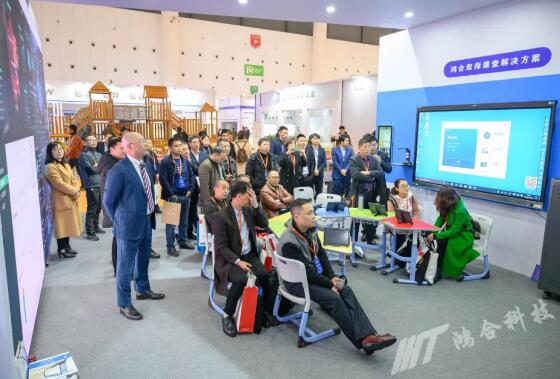 在本屆博覽會上,鴻合科技憑借長期服務(wù)教育行業(yè)信息化建設(shè)的深厚經(jīng)驗,在位于4A080展區(qū)以225平的展位面積,展出了包括鴻合智慧教室、雙師課堂、雙屏教學(xué),校園數(shù)字媒體發(fā)布系統(tǒng)等面向不同應(yīng)用場景的完整生態(tài)教育解決方案,以及鴻合智能交互黑板、智能交互平板、智能交互白板一體機(jī)、幼教交互白板、激光投影機(jī)、鴻合電子書包等一系列先進(jìn)的智能交互硬件設(shè)備。除硬件設(shè)備及解決方案外,鴻合π交互教學(xué)軟件、鴻合愛學(xué)班班教師應(yīng)用軟件也吸引了現(xiàn)場眾多參觀者駐足圍觀。