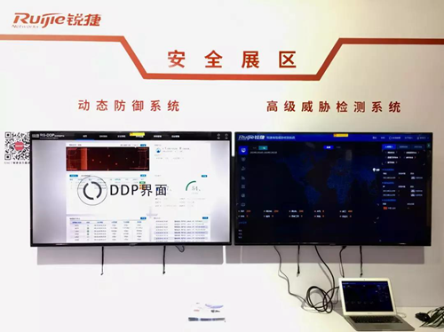 在等保2.0的大背景下,本次大會銳捷在安全展區展出了高級威脅監測系統、態勢感知和病毒克星-動態防御系統,通過構建及時變化、持續進化的“動態安全”體系為客戶打造安全可靠的網絡環境。