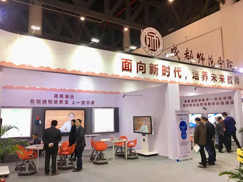 此外,成都師范學院也在其展區對銳捷智慧教室進行了展出。作為成都師范學院智慧教室的長期合作伙伴,銳捷智慧教室堅持服務教學,從課堂的場景出發,秉承“簡易融合“的建設思想打造全面的解決方案,旨在以最有效的方式、恰當好處地支撐、容納更多教學法,幫助老師提高課堂效率,為學生打造更有趣的課堂。