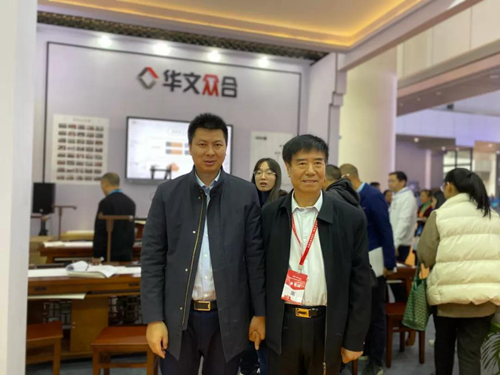寧夏教育裝備行業協會會長黃樺(右)蒞臨華文眾合展位