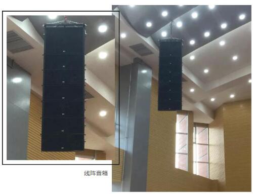 主線陣音箱的設(shè)計,采用全頻音箱+低頻音箱組合吊裝,根據(jù)會場的實(shí)際長度調(diào)整每只全頻音箱音域的輻射角度,確保覆蓋無死角。