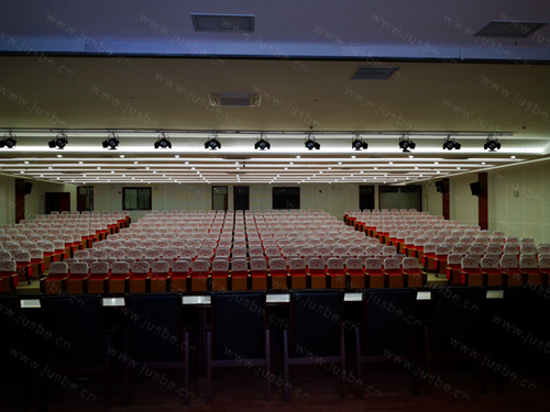 報告廳主席臺會議桌采用的手拉手討論型會議系統,具有多種會議模式切換,可設置發言數量、自動關閉、限時關閉、聲控發言等功能,話筒聲音拾取真實、自然。用做活動演出的真分集無線話筒,采用高保真、寬音域的音頻處理電路,抗干擾能力強,收發信號穩定,支持多人多支話筒同場使用,不串頻、不斷頻。