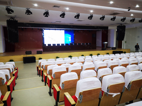 輔助音箱的設計則在觀眾席位區安裝4只多功能音箱,小巧聲壓大,角度靈活可調,席位邊角、后排都能擁有足夠的清晰度和直達聲。同時,舞臺前沿配置無源超低音音箱和同軸返聽音箱,讓整個報告廳獲得最佳擴聲效果。