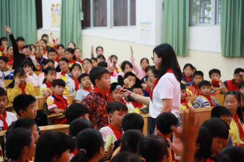 授課后,廣東省清遠(yuǎn)市連南縣民族小學(xué)的學(xué)生圍著老師一起討論
