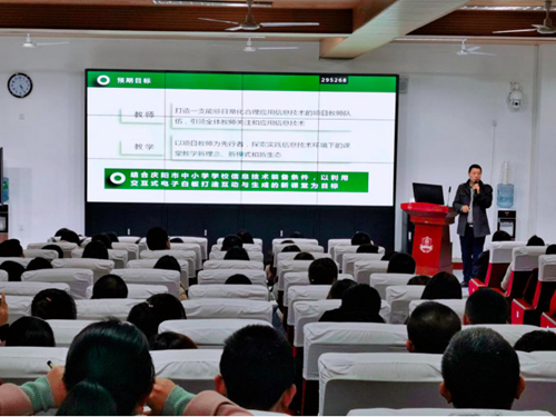 希沃教育研修院高級(jí)教師顧問(wèn)朱磊對(duì)慶陽(yáng)市信息化教學(xué)改革做了交流,他從名師工作室的成立條件、發(fā)展方向和意義等方面,給慶陽(yáng)市的老師們做了介紹,并把全國(guó)各地的名師工作室經(jīng)驗(yàn)做了分享。