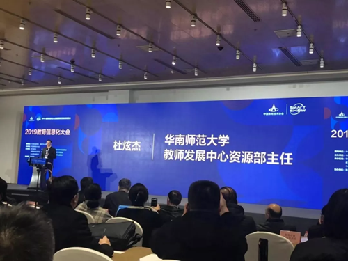 會上,黃榮懷教授、楊曉健副會長等專家學(xué)者都上臺進行了教育信息化發(fā)展的報告。華南師范大學(xué)教師發(fā)展中心資源部主任杜炫杰博士分享了《校園學(xué)習(xí)空間建設(shè)與應(yīng)用案例》。