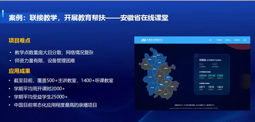 扎根教育前線十五載,奧威亞打造的安徽在線課堂案例,通過建設(shè)“智慧課堂”,解決了教學(xué)空間資源難調(diào)動的問題;通過常態(tài)化的遠距離的教學(xué)互動,真正實現(xiàn)教學(xué)資源的實時共享,奧威亞安徽在線課堂的應(yīng)用為全聯(lián)接教學(xué)中的“聯(lián)接教學(xué)”模塊,樹立了里程碑式的實踐意義。