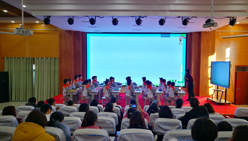 課程最后,張老師寓教于樂,利用希沃白板軟件內置的課堂互動游戲功能,帶領孩子們在歡樂的游戲中,回顧本堂課的知識點,在一片歡樂聲中結束了本節觀摩課。不僅如此,張老師又為在場的老師們分享了自己的課件設計思路以及注意事項,生動、直觀、全面地分享了一堂優秀的觀摩課的生成全過程。