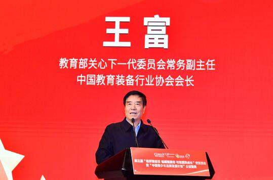 教育部關心下一代委員會常務副主任、中國教育裝備行業協會會長王富在“中國青少年品牌發展計劃”公益盛典上致辭。
