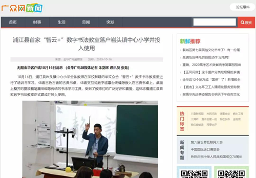 浦江縣首家數字書法教室正式啟用,獲金華廣電融媒體報道