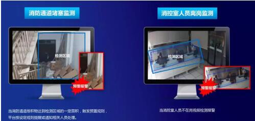 適用于銀行大樓和網(wǎng)點(diǎn),加裝AI智能分析攝像頭,自動(dòng)識(shí)別現(xiàn)場(chǎng)環(huán)境溫度、火災(zāi)火點(diǎn)、消防通道堵塞及消防控制室人員值班脫崗情況。