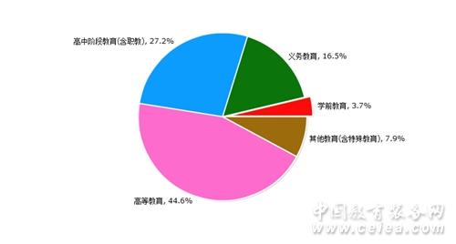 12月中標(biāo)信息所屬領(lǐng)域統(tǒng)計(jì)圖,如圖10所示:學(xué)前教育占比為3.7%;義務(wù)教育占比為16.5%;高中階段教育(含職教)占比為27.2%;高等教育占比為44.6%;其他教育(含特殊教育)占比為7.9%。