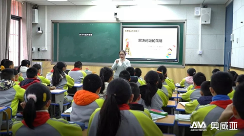 本次教研活動,貴陽市實驗第二小學作為主講端,針對《解決問題的策略》課題進行講授,將本地教室師生畫面、課件畫面進行實時共享,實現五校師生同上一堂課。