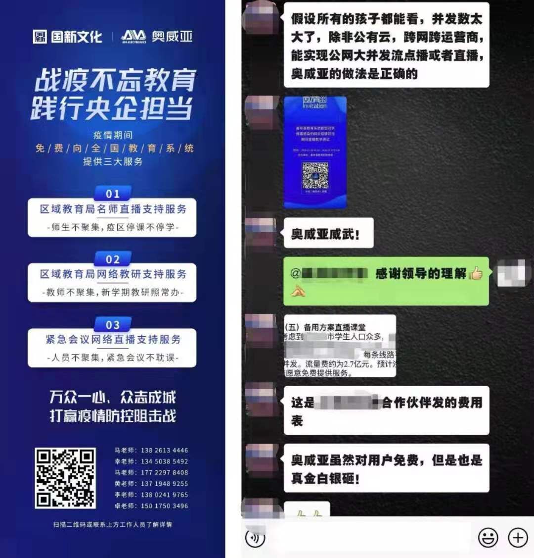 在各地紛紛發出“延期開學”通知之時,為滿足教育系統網絡遠程教學、教研工作的需求,奧威亞快速響應,第一時間面向全國教育系統力推三大免費服務(疫情期間)。免費服務一經推出,立刻得到全國各地教育系統的強烈反響和一致認同。