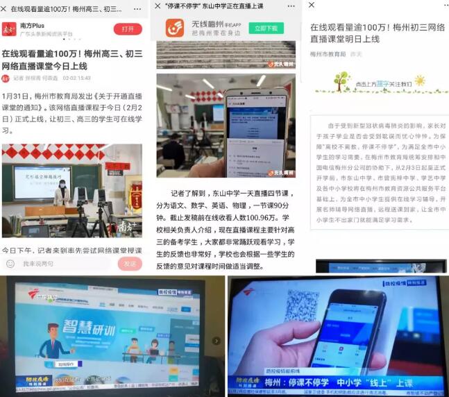 圖為:相關媒體和電視臺對梅州名師直播進行集中報道