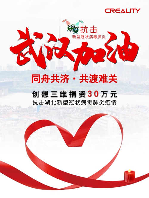 近期,湖北省武漢市等多個地區正經歷著新型冠狀病毒感染肺炎疫情的嚴峻考驗。生命重于泰山,疫情牽動著全國人民的心,為支持武漢抗擊疫情,深圳市創想三維科技有限公司向武漢市慈善總會捐贈30萬元,專項用于疫情防治。