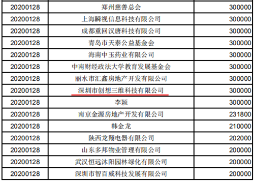 創想三維向武漢市捐贈30萬用于疫情防治,共同抗擊疫情