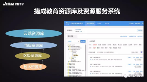 捷成教學資源平臺擁有100萬份課件、教案、學案、試卷和視頻,能夠支撐教師數字化的備授課和學生在線學習。