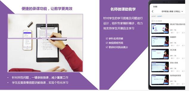 便捷微課錄制講解,實現精準在線輔導。名師微課自主學習,薄弱環節精準提升。