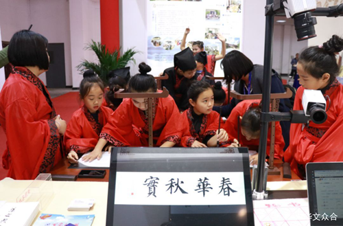 在科博會現(xiàn)場,華文眾合的智慧書法教室展位格外引人注目。古色古香又不失科技感的教室吸引大量觀眾駐足參觀體驗,更有身著古裝的小朋友在華文眾合展位練習(xí)書法,興趣十足。