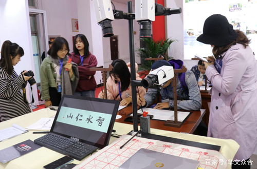 此次科博會,華文眾合展示了歷經(jīng)多次迭代的智慧書法教室。歷時多年自主研發(fā)設(shè)計的交互式數(shù)字臨摹臺,將普通宣紙直接覆蓋在上面就可實現(xiàn)高清臨摹,且保留傳統(tǒng)的筆、墨、紙的書寫體驗,解決了書法臨摹的難題;教學(xué)直播系統(tǒng)可以將教師的書寫示范實時高清地同步傳輸?shù)矫恳晃粚W(xué)生的交互式數(shù)字臨摹臺上,學(xué)生可以直觀地觀看教師書寫的過程,解決了一對一教學(xué)示范與課堂教學(xué)效率不高的難題。