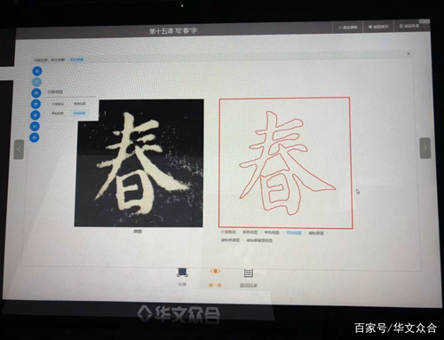 同時,華文眾合智慧書法教室展出了日前推出的“智能課程平臺”,其內(nèi)容詳實豐富,包含漢字的書寫要點、行筆路線、筆順視圖、筆勢視圖、單鉤視圖、雙鉤視圖、碑帖原圖、碑帖修復(fù)圖……對學(xué)生認(rèn)識與掌握漢字的基本信息、間架結(jié)構(gòu)有很大啟發(fā)與幫助。