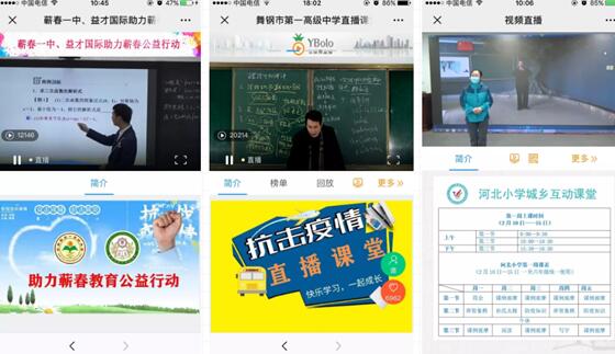 二月初,銳取以錄播設備和直播平臺,助力蘄春縣第一高級中學和黃岡市益才國際學校、舞鋼市第一高級中學、河北小學等多方省市的院校,推出網絡“空中課堂”,幫助停課不停學人次達88萬。